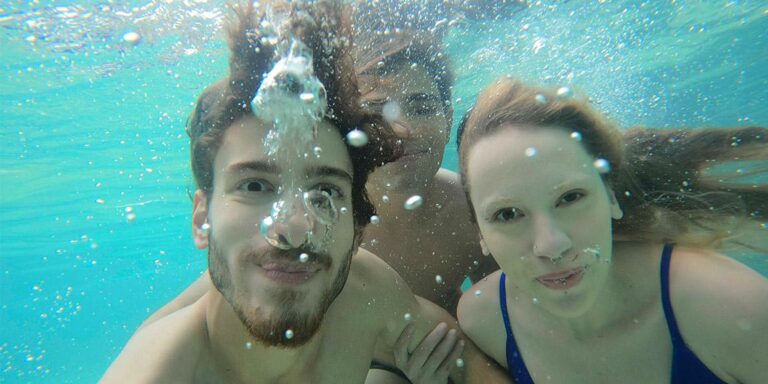 Crianças com seus pais mergulhando no Hot Beach com brinquedos aquáticos ao fundo - Blog - Hot Beach Parques & Resorts |